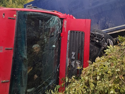 Prema rečima vozača kamion je sleteo sa puta juče od 19:30 i od tada pa do trenutka kad su ga naši radnici pronašli vozač je bio u kamionu.