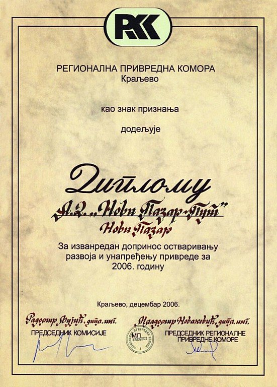 - Direktor Izet Ljajić je naveden i kao jedan od 100 najuspešnijih menadžera Srbije u enciklopediji praktičnog preduzetništva i menadžmenta - Uspešni preduzetnici i menadžeri Srbije 2009.