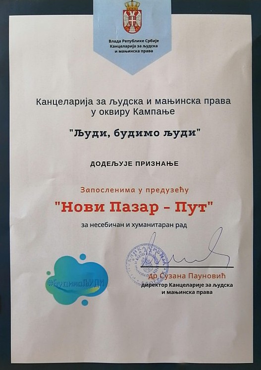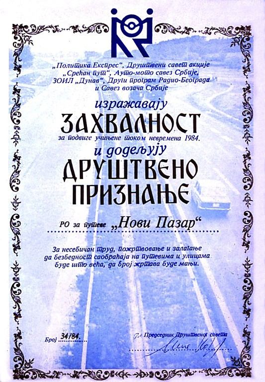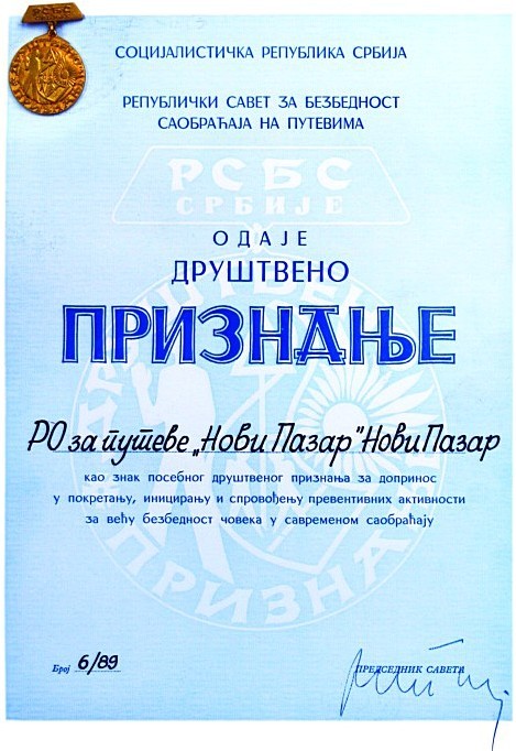- Od strane Privredne komore Kraljevo 2010. godine dobili smo nagradu za ostvarene rezultate u izgradnji i održavanju putne mreže.